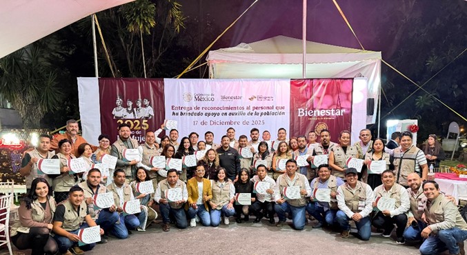 Durante el convivio, Gómez Cazarín entregó reconocimientos a Servidores de la Nación y personal de UBAS por su labor en la atención a damnificados por las inundaciones en municipios del norte del estado, como Poza Rica y Álamo. Destacó el compromiso de Bienestar con el servicio al pueblo y el trabajo solidario en situaciones de emergencia. El reconocimiento al personal se dio en coordinación con el gobierno federal y estatal, siguiendo las directrices de la presidenta Claudia Sheinbaum, la secretaria Ariadna Montiel y la gobernadora Rocío Nahle.