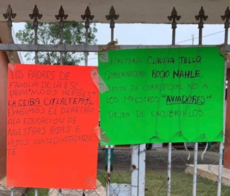 La otra jugada es más burda: enrarecer el ambiente en comunidades alejadas, mover a padres de familia y colocar cartulinas acusando a la gobernadora Rocío Nahle y a la secretaria Claudia Tello de encubrir a maestros faltistas. Justo lo contrario de lo que ocurre. La estrategia es clara: culpar al gobierno para forzar una negociación que les devuelva la impunidad perdida.