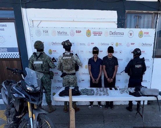 Así también, luego de un reporte sobre robo a negocio registrado en el municipio de Tihuatlán, fueron intervenidos Iván “N” y Joel “N”, señalados como presuntos responsables del delito, a quienes les aseguraron una réplica de arma de fuego tipo escuadra y una camioneta Ford, tipo Explorer, placas WXE531A.