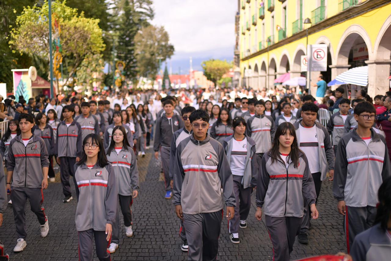 Desde el palco principal en los bajos del Palacio de Gobierno, la jefa del Ejecutivo Rocío Nahle García, acompañada por representantes de los tres Poderes del Estado y mandos militares y navales, encabezó la ceremonia en la que participaron 4 mil 580 elementos que recorrieron las calles del Centro Histórico de Xalapa, desde el Palacio Municipal hasta el parque Los Berros, en un trayecto aproximado de hora y media.