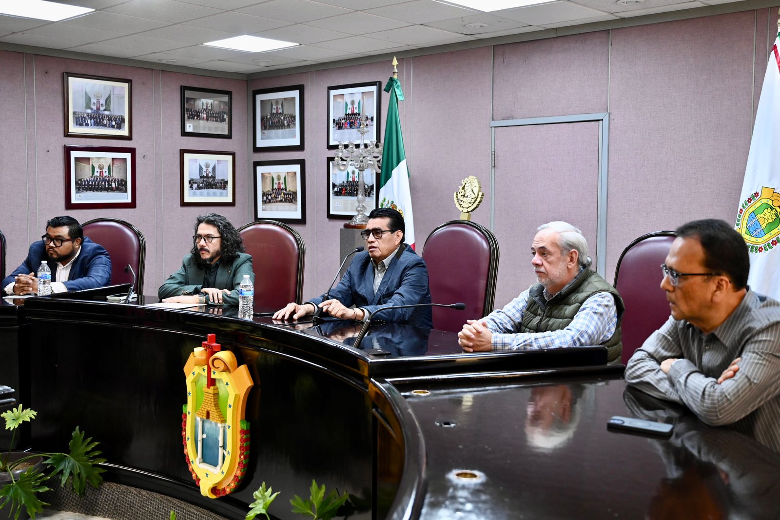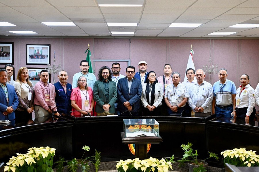 Xalapa, Ver., 24 de noviembre de 2025.- El diputado presidente de la Junta de Coordinación Política (Jucopo) de la LXVII Legislatura, Esteban Bautista Hernández, recibió a más de 20 líderes del gremio sindical del Poder Ejecutivo y organismos autónomos, quienes reconocieron su voluntad e intervención para llevar a buen término las negociaciones para frenar la iniciativa a la Ley Estatal del Servicio Civil, en materia laboral.