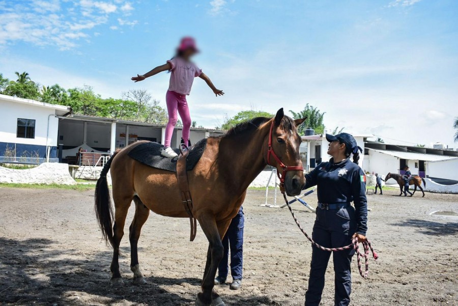 Xalapa, Ver., miércoles 03 de diciembre del 2025.- En el marco del Día Internacional de las Personas con Discapacidad y como parte de las acciones de atención a la ciudadanía, la Secretaría de Seguridad Pública (SSP), a través de la Unidad Montada de Policía Estatal, impulsa de manera gratuita el programa integral de terapias asistidas con caballos, conocida como equinoterapia.