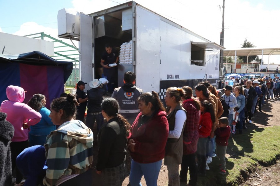 Asimismo, la Secretaría de Seguridad Pública participó activamente en la localidad de Acocota, municipio de Acajete, mediante la instalación de una cocina móvil para servir porciones de comida caliente, la entrega de alimentos preparados y libros infantiles, fortaleciendo el bienestar y desarrollo integral de niñas y niños.