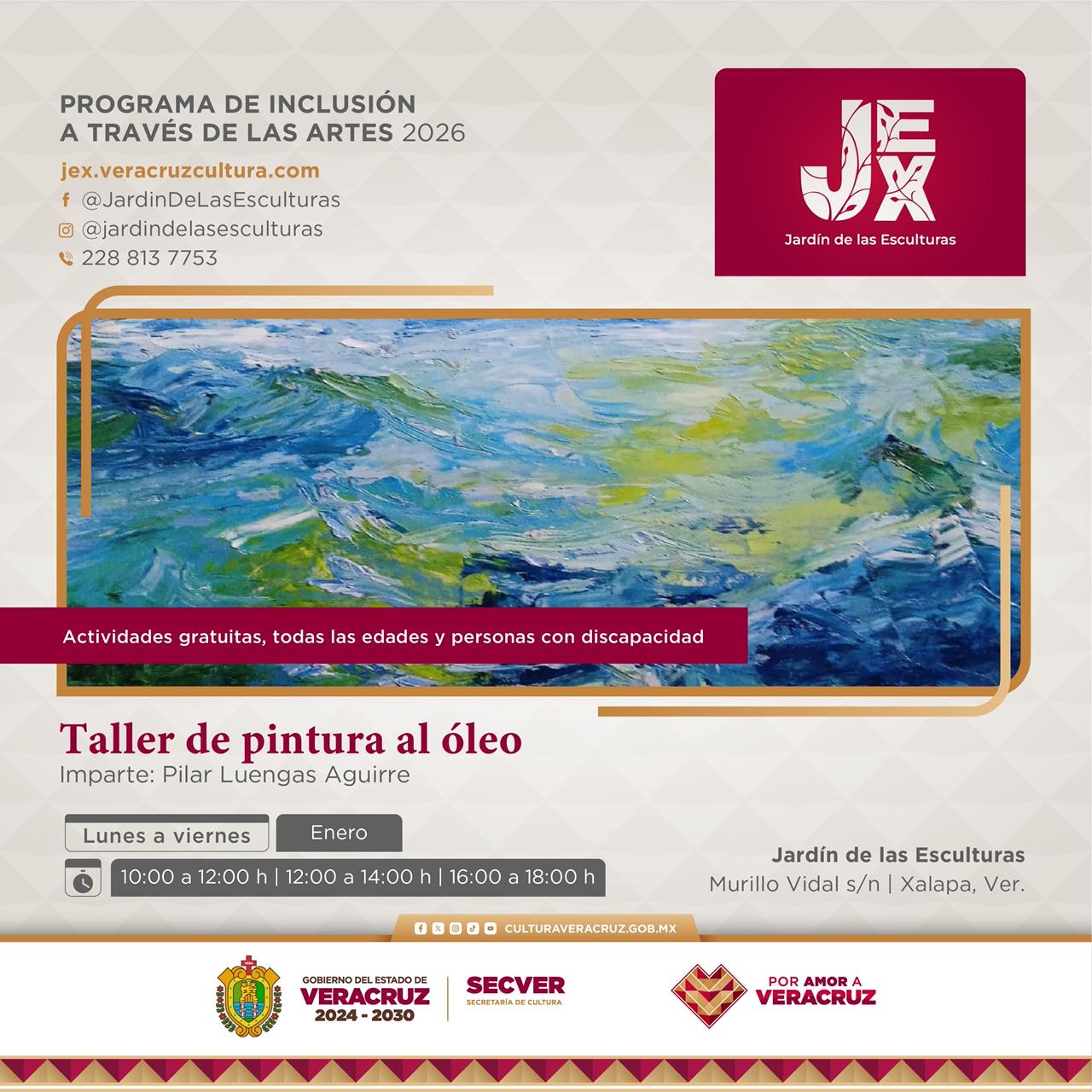 Además, ofrece talleres permanentes en el JEX, otros recintos de la SECVER y espacios de instituciones y asociaciones civiles durante todo el año. Sus actividades están dirigidas al público en general, artistas y agentes culturales interesados en adquirir herramientas para el diseño e implementación de proyectos artísticos con enfoque de inclusión social.