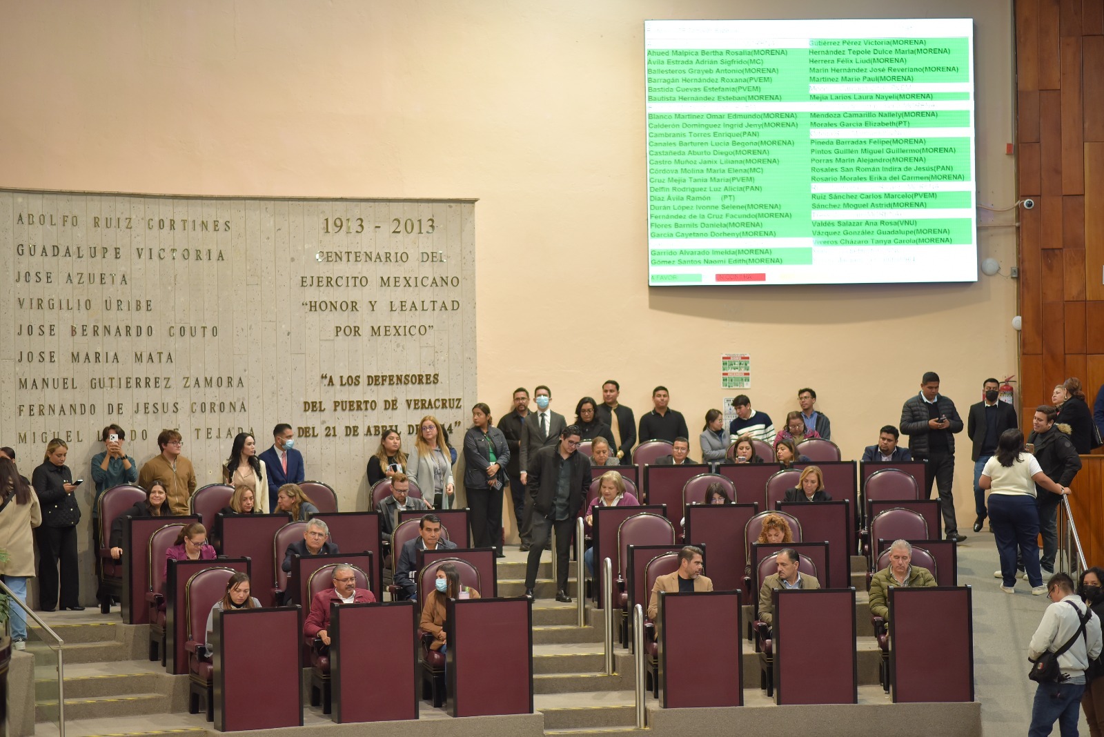 Con 42 votos a favor, la LXVII Legislatura avaló el proyecto de Punto de Acuerdo presentado por la Junta de Coordinación Política para integrar la Comisión Especial del Premio Estatal a la Mujer 2026, en cumplimiento al artículo 23 nonies de la Ley de Premios del Estado de Veracruz.
