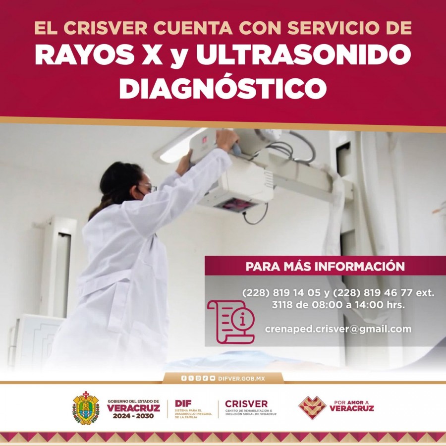 Xalapa, Ver., miércoles 25 de febrero de 2026.- El Sistema Estatal para el Desarrollo Integral de la Familia pone a disposición de la ciudadanía los servicios de rayos X y ultrasonido diagnóstico en las instalaciones del Centro de Rehabilitación e Inclusión Social de Veracruz (CRISVER).