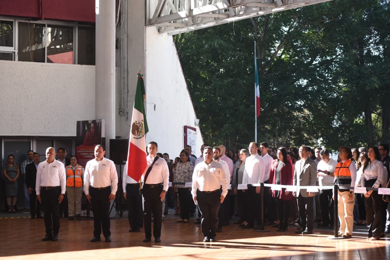 En el marco del Lunes Cívico, realizado en la explanada de la dependencia, la joven prodigio Adhara Maite Pérez Sánchez —quien a sus 14 años es científica e ingeniera y cuenta con un coeficiente intelectual de 162, considerado de los más altos a nivel mundial— acompañó a las autoridades académicas.