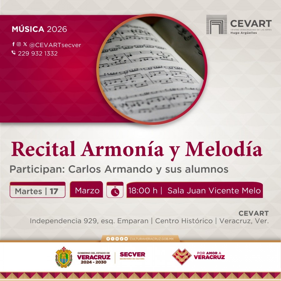 La SECVER reitera su invitación para asistir a esta ciclo de recitales. Conoce más información sobre esta y otras actividades en las redes sociales del @CEVARTsecver. Sigue la cuenta de la @SECVERoficial para conocer todas las actividades que confirman por qué Veracruz está de moda. |