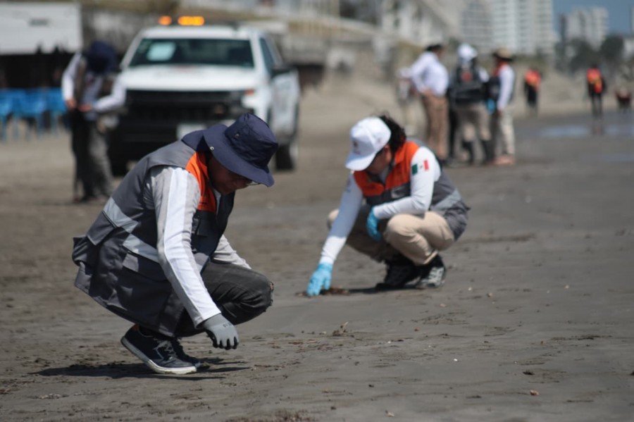Precisó que se trata de trazas de hidrocarburo presentes en cantidades reducidas, sin acumulaciones mayores, las cuales son retiradas mediante un trabajo minucioso. Las labores se concentran en la zona de rompiente, donde el oleaje deposita los residuos, mismos que son recolectados de forma manual tras un primer barrido municipal.