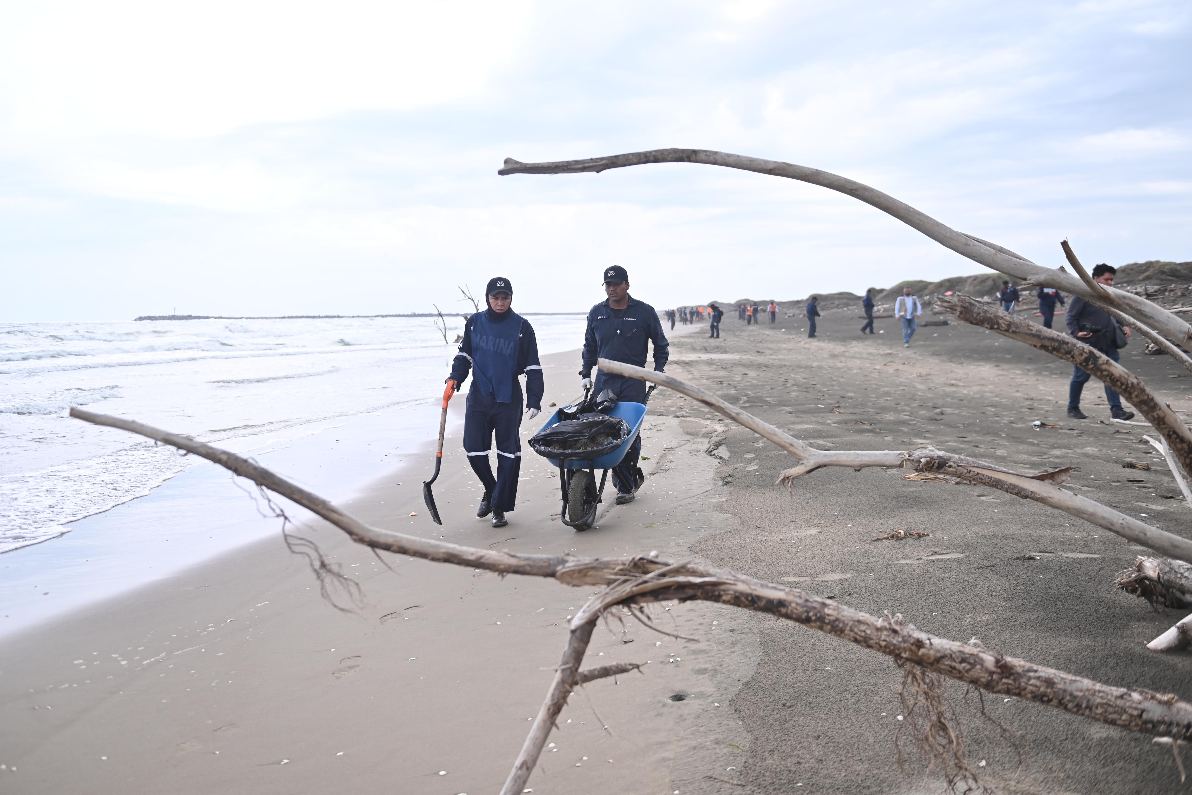 Como parte de estos trabajos, participaron brigadas de la Secretaría de Marina, a través de la Primera Región Naval y la Capitanía de Puerto, así como de la Secretaría de Protección Civil y el Ayuntamiento de Alvarado, quienes efectuaron la recolección de residuos y el monitoreo ambiental en más de 15 kilómetros de costa.