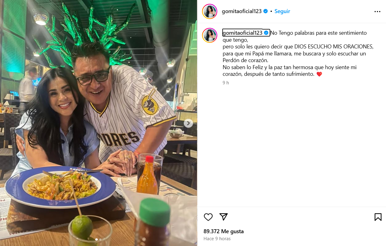 La noticia de la reconciliación, sorprendió a sus seguidores, ya que hace algunos años su relación se vio marcada por violentos conflictos, que terminaron en denuncias y enfrentamientos legales, ya que Gomita denunció a su padre por presuntamente agredirla física y psicológicamente.