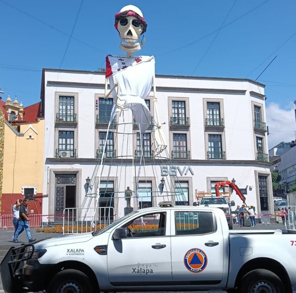 Por Frente Frío No. 11, retiran temporalmente la Catrina Monumental de Plaza Lerdo en Xalapa