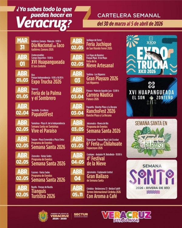 Xalapa, Ver., martes 31 de marzo de 2026.– En esta Semana Santa, la Secretaría de Turismo (SECTUR) invita a d...