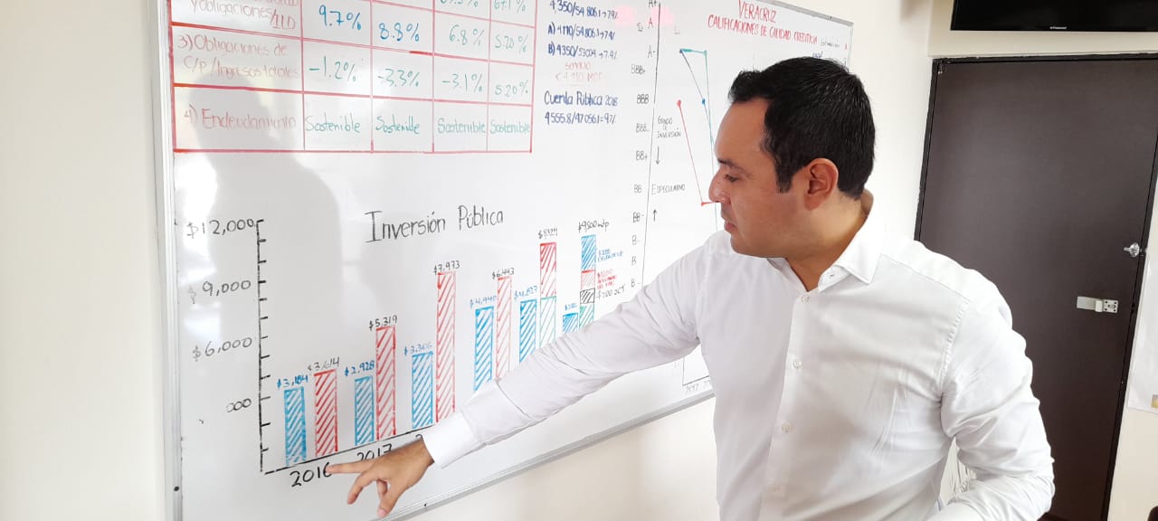 Pregunta: ¿Cómo se han movido los niveles de la deuda en Veracruz en la presente administración? Lima Franco: Los recientes comentarios de líder de MC, hablan solo de una deuda, que es la deuda bancaria. La deuda total que heredó el Estado era muchísimo mayor. Aparte de la deuda bancaria estaba la deuda con el SAT, la deuda con el ISSSTE, la deuda con municipios, -que ya han sido liquidadas en la presente administración-, y la deuda con proveedores, con contratistas que ya se han pagado en un alto porcentaje. La deuda que traemos ahora en el balance, que fue del total del pasivo heredado a la actual administración, tan solo esa era de 59 mil millones, y hoy en día, si la revisamos al cierre del 2021 ya bajó a 53 mil millones, es decir, ha habido una disminución de más de 6 mil millones en la deuda del Estado, y esto es tan solo la que está dentro del Balance, aparte existe otra también heredada que está fuera del Balance, y de la cual ya se han pagado más de 12 mil millones al SAT por concepto de impuestos cobrados a los trabajadores y no enterados en la Tesorería de la Federación por gobiernos anteriores, y, gran parte de esos 12 mil millones, eran cargas financieras, multas, recargos, que se tienen que pagar porque no se habían pagado los impuestos. En cuanto a la deuda bancaria al inicio de la administración ésta estaba alrededor de los 44 mil millones, incluyendo la deuda de corto plazo, y hoy en día estamos prácticamente en el mismo nivel. Hay que enfatizar que es deuda heredada, nosotros lo que hicimos fue reestructurarla. Nosotros lo que hicimos no fue aumentar el plazo, que coloquialmente se le dice que “pateas la deuda”, nosotros traíamos una deuda ponderada en plazo de poco más de 21 años. Cuando se hizo la reestructuración incluso se redujo a 20 años para que fuera más apetecible para los bancos, y para que nos ofrecieran más ofertas y mejores tasas de interés.