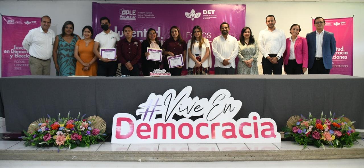 Poza Rica, Veracruz, 17 de octubre de 2022. Con sede en el Instituto Tecnológico Superior (ITS) de Poza Rica, se realizó el tercer Foro Universitario con el tema “Retos y Logros por Venir en el Empoderamiento de la Mujer”, donde se destacó una alta participación de alumnas y alumnos que charlaron con autoridades electorales locales. Al evento asistieron, Juan Marcelo García Espinoza, Coordinador de Comunicación y Difusión del Departamento de Vinculación de la Dirección Estatal de Tecnológicos; Jesús Huerta Chua, Director General del ITS Poza Rica; Heriberto Ortiz Vera, Director de Vinculación de la Universidad Tecnológica (UT) de Gutiérrez Zamora; Zarahemla Ramírez Hernández, Directora General del ITS de Álamo Temapache; y la Consejera Electoral, María de Lourdes Fernández Martínez –Presidenta de la Comisión Especial para la Promoción de la Cultura Democrática. En la primera actividad donde participaron las y los estudiantes de Institutos Tecnológicos del Estado, se destacaron importantes reflexiones por parte de alumnas y alumnos, como lo es la discriminación, la inseguridad, la paridad electoral, brecha salarial y violencia contra las mujeres. La Consejera Electoral, Mabel Aseret Hernández Meneses moderó este evento y señaló que el rumbo que tome el país será acorde a como se participe en las urnas; en cuanto al tema, agregó que es importante que las mujeres sean conscientes de sus derechos y que marquen límites en cualquier lugar donde se desarrollen. La alumna en Ingeniería Petrolera del ITS de Poza Rica, Giovana Francesca Decuirt García expresó que las mujeres se enfrentan a la precarización laboral, la violencia contra las mujeres, la necesidad de igualdad y paridad de género en todos los ámbitos. Viviana Victoria Espinoza, alumna en Ingeniería en Industrias Alimentarias del ITS de Álamo Temapache, recordó que las mujeres en la política en México han avanzado en el porcentaje de la participación femenina en las legislaturas nacional y estatal. David Miguel Luna Gutiérrez, estudiante de Ingeniería en Gestión y Desarrollo de Software de la UT de Gutiérrez Zamora, mencionó que las mujeres se han encontrado con más barreras para desarrollarse profesionalmente, ahí la importancia de que todas y todos las respalden. El estudiante en Ingeniería Petrolera del ITS de Poza Rica, Johan Méndez Hernández dijo que el empoderamiento femenino cuenta con varios logros como el social visto con el movimiento feminista. Sin embargo, existen retos por superar como la incansable lucha contra el hostigamiento y acoso; así como impulsar la participación de las mujeres en estudios profesionales relacionados con la ciencia, tecnología, ingeniería y matemáticas. En la segunda actividad, la Magistrada del Tribunal Electoral Veracruz (TEV), Claudia Díaz Tablada expuso que, en este órgano jurisdiccional electoral, reciben varios asuntos de violencia política contra las mujeres y la obstaculización en el cargo a mujeres, así que ella se enfoca primordialmente en garantizar el respeto de los derechos políticos de las mujeres. El Consejero Electoral, Fernando García Ramos presentó a la ponente e hizo la entrega del reconocimiento a la magistrada Claudia Díaz Tablada por su participación en la charla reflexiva. Por último, la Presidenta de la Comisión Especial para la Promoción de la Cultura Democrática, entregó la insignia “Vive en Democracia” al ITS de Poza Rica por ser sede del tercer Foro Universitario y su compromiso con la participación de la juventud en política y elecciones.