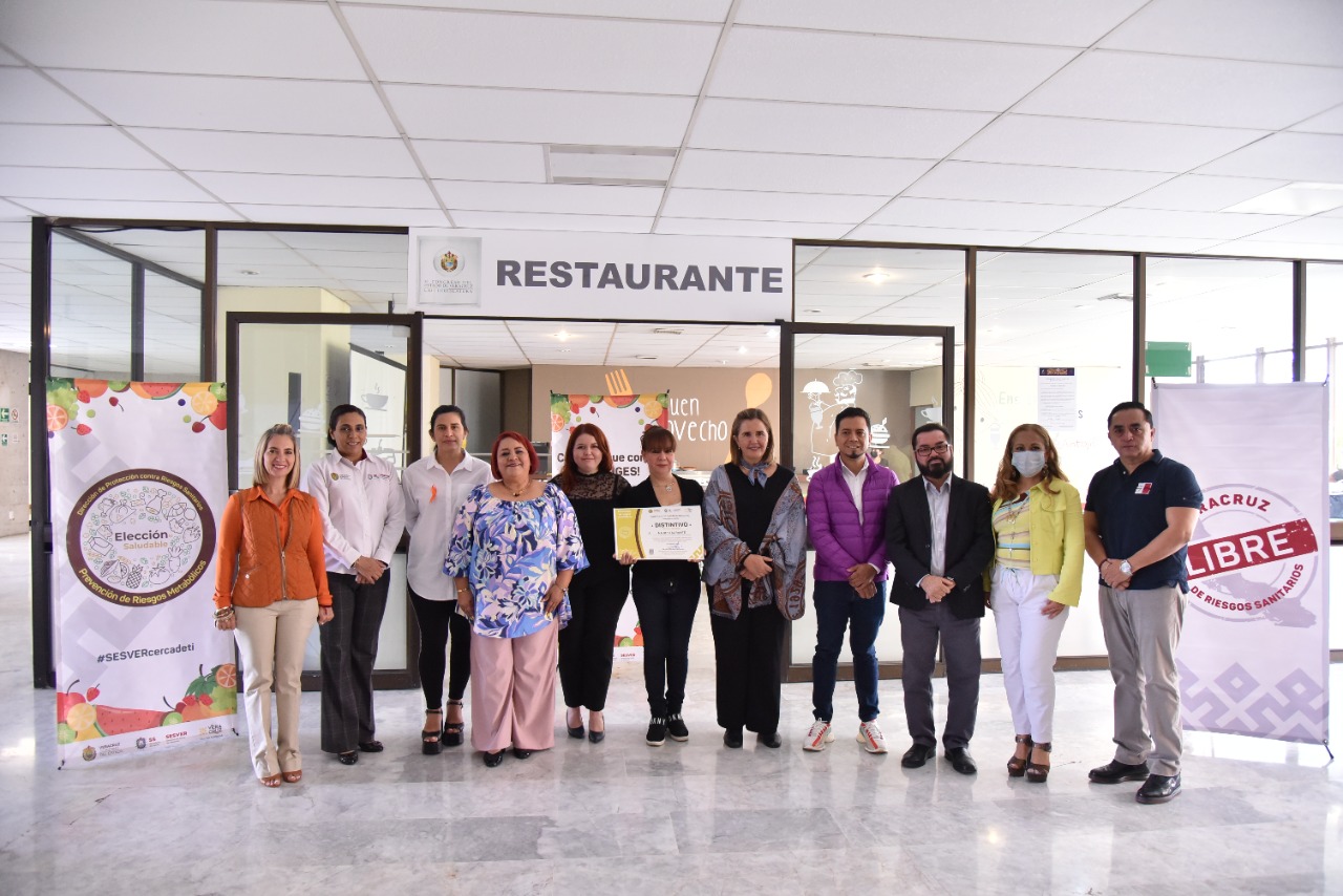 La LXVI Legislatura de Veracruz se sumó al programa estatal Elección Saludable, promovido por la Secretaría de Salud del estado (SS) y que tiene como objeto aumentar la oferta de opciones de alimentos saludables en establecimientos fijos. Este día, las presidentas de la Mesa Directiva, diputada Cecilia Guevara, y de la Comisión Permanente de Salud y Asistencia, diputada Adriana Esther Martínez Sánchez constataron la entrega del distintivo Elección Saludable al restaurante del Congreso del Estado, por parte de personal de la Dirección de Protección contra Riesgos Sanitarios de la SS, toda vez que cumplió con los requisitos del citado programa. Con la presencia de Luz María Martínez Aguilar, quien acudió en representación de Julián Morales Barrientos, titular de la Dirección de Protección Contra Riesgos Sanitarios de la SS, y de Aurora Huesca, responsable del programa estatal Elección Saludable, la diputada Adriana Esther Martínez Sánchez se congratuló con esta acción, ya que –indicó- permitirá que personal de este Congreso, diputadas y diputados, así como visitantes tengan la certeza que hay opciones saludables de alimentación en este lugar. Asimismo, reconoció las políticas públicas implementadas por el gobierno del ingeniero Cuitláhuac García Jiménez, "porque es una persona que siempre se ha preocupado por la salud de las y los veracruzanos y con estas medidas se ofrece al turista o cualquier visitante alternativas para consumir frutas, jugos, verduras; una alimentación sana". La diputada Cecilia Guevara habló sobre el trabajo de su homóloga Adriana Esther Martínez Sánchez de quien, dijo, es una legisladora comprometida con la Comisión de Salud y que procura y gestiona jornadas médicas, para las y los trabajadores, así como para gente de su distrito. Por otra parte, la presidenta del Congreso subrayó la importancia de alimentarse sanamente y de vigilar en qué establecimiento deben ingerirse los productos, "actualmente hay riesgos a la salud, porque hay lugares que disfrazan los alimentos con vinagre u otros condimentos; y eso puede ser muy perjudicial para cualquier persona". Al acto asistieron las diputadas Magaly Armenta Oliveros y Ana Miriam Ferráez Centeno; el legislador Sergio Lenin Guzmán Ricárdez y el diputade Gonzalo Durán Chincoya, así como el Secretario del Sindicato Único de Trabajadores al Servicio del Poder Legislativo (SUTSPL), José de Jesús Rodríguez Hernández; la Jefa del Servicio Médico del Congreso del Estado, Claudia del Rosario García Pérez, y la encargada del restaurante NA, ubicado al interior de este Poder Legislativo, Nori Sareí Aguilar Arcos.