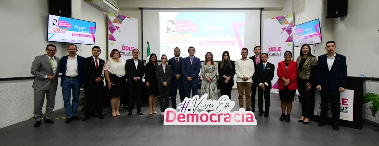 Fue en el Auditorio “Leonardo Pasquel” del OPLE Veracruz, en donde se realizó la etapa estatal del Concurso Nacional de Oratoria 2022, con las participaciones de: Karol Karim Mar Alonso, Carlos Herrera Rivera, Rafael Lorenzo Torres Fontecilla, Evelyn De Miranda Ordóñez Segura y Abisai Domínguez Mata. El Jurado Calificador estuvo integrado por: Arturo Miguel Chípuli Castillo, Director del Instituto de Investigaciones Jurídicas de la Universidad Veracruzana; ; Julia Hernández García, Catedrática de la Universidad de Xalapa; Juan Carlos Molina Flores, Docente de la escuela de bachilleres mixta “Antonio María De Rivera”; y Nazareth Montes Velásquez, Jefa de Departamento de Comunicación del Colegio de Veracruz. Cada participante tuvo su oportunidad para desarrollar los temas relacionados con democracia, género, participación ciudadana, grupos vulnerables, redes sociales y discurso de Belisario Domínguez Palencia. Después de la deliberación del Jurado Calificador se decidió que las personas ganadoras de los tres primeros lugares son: Primer lugar, Karol Karim Mar Alonso $5,000.00 y reconocimiento. Segundo lugar, Carlos Herrera Rivera $3,000.00 y reconocimiento. Tercer lugar, Abisai Domínguez Mata $2,000.00 y reconocimiento.