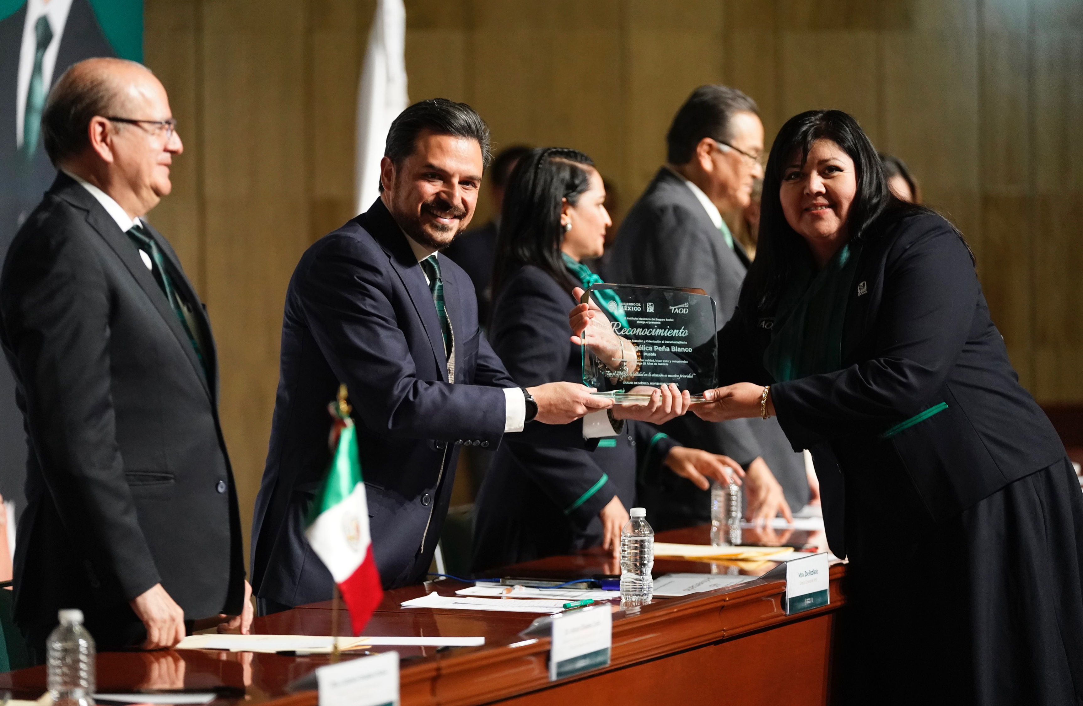 A lo largo de los casi 80 años de historia del Seguro Social, hombres y mujeres han dedicado su vida al servicio de los demás y, también han pensado cómo mejorar y resolver las dificultades para siempre poder pensar el futuro del IMSS de manera positiva. En su mensaje, la titular de la UAD del IMSS, Gabriela Paredes Orozco, señaló que desde hace dos años el personal TAOD trabaja en los ejes que el director general denominó las cuatro T del Seguro Social: tiempo, transparencia, territorio y trato. Afirmó que la labor permite informar a familiares, brindarles acompañamiento, mitigar la incertidumbre y atender de manera satisfactoria, “porque gracias al trabajo que ustedes hacen, podemos fortalecer la imagen de nuestro querido Instituto”. Agregó que todas las y los Técnicos cuentan con certificación profesional y registran todos los días en el Sistema de Atención a la Derechohabiencia más de 28 mil peticiones, cada una con trazabilidad “que nos permite brindar información estratégica”. En su intervención, el secretario general del SNTSS, doctor Arturo Olivares Cerda, destacó que la orientación oportuna y precisa que brinda el personal TAOD es el inicio de un eslabón que busca curar de la mejor manera a una enferma o enfermo. “Su oportuna intervención también ha servido para reducir sustancialmente el número de quejas, lo que sin duda es señal de que el IMSS cada vez está más cerca de sus afiliados”.