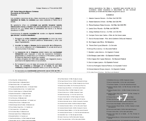 A algunos priistas veracruzanos se les queman las habas por suceder a Marlon Ramírez Marín en la presidencia del CDE del PRI. Lo anterior con base en el contenido de un documento en poder de quien esto escribe, que hicieron llegar al presidente del CEN del PRI, Alejandro Moreno Cárdenas, el pasado 17 de abril. Dicho documento estuvo signado por 248 presuntos priistas entre los que aparecen los nombres de 5 expresidentes del CDE, 35 exdiputados locales y federales, 48 expresidentes municipales, además de 136 dirigentes y militantes priistas. El tema central y contenido del documento antes mencionado es solicitar al CEN del PRI que ante el vencimiento estatutario de la actual dirigencia del Comité Directivo Estatal en Veracruz, establecido para el próximo 14 de mayo, se propicie un relevo a la altura de la categoría política de los priistas veracruzanos y se recupere la unidad, inclusión y participación de todas las voces, así como que se den a conocer las reglas y tiempos para la renovación de la dirigencia estatal del instituto político. Ante lo que parecía una acción seria de parte de quienes aparecen como firmantes del documento, se buscó conocer la reacción de la presidencia del CEN del PRI a través de amigos que se encuentran muy cercanos al dirigente nacional de ‘Alito’ Alejandro Moreno Cárdenas. Se esperaba recibir información positiva de la acción emprendida por los veracruzanos y conocer al menos la opinión de ‘Alito’ Moreno y la fecha con la que sería emitida la Convocatoria para la renovación del CDE.