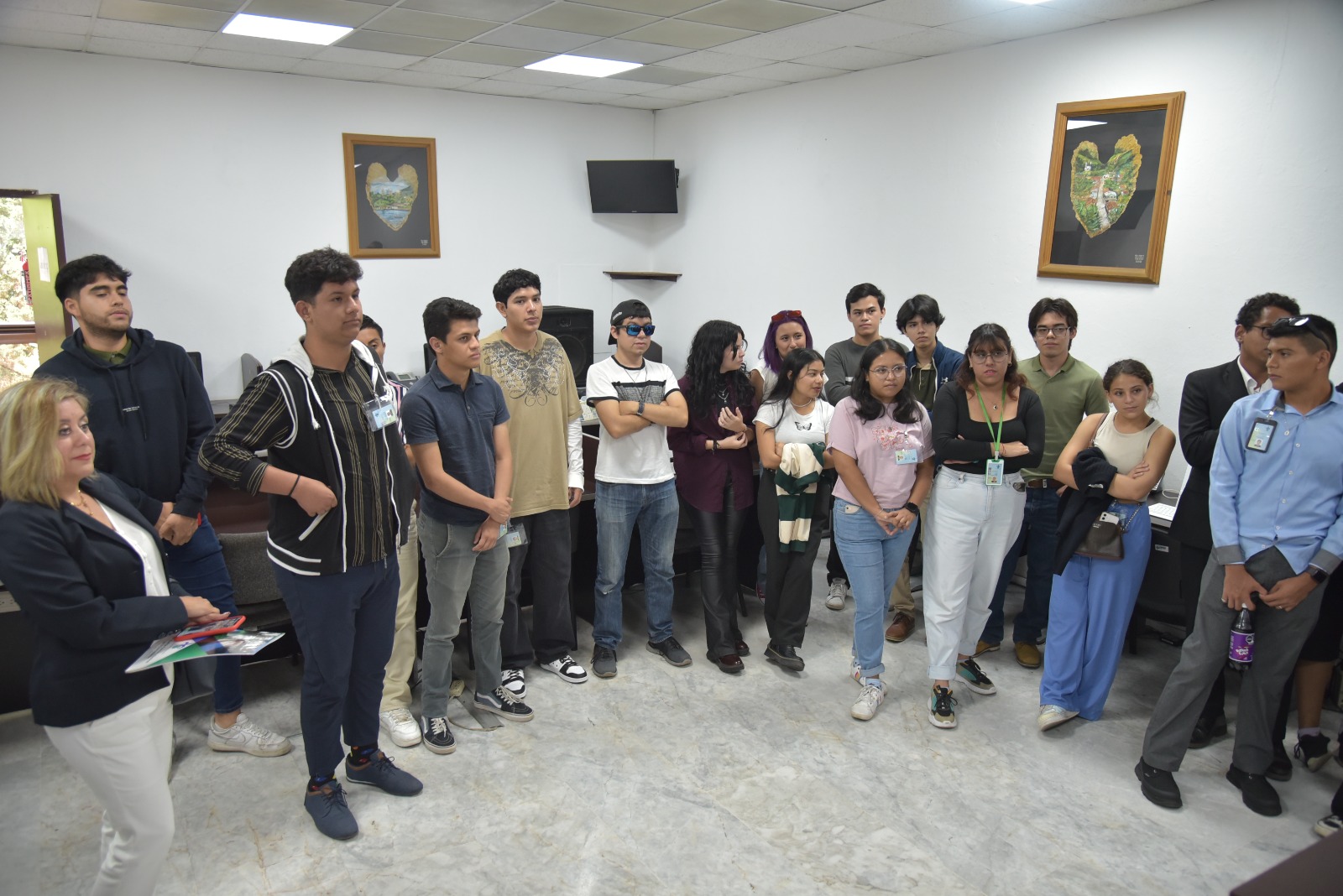 El Congreso del Estado de Veracruz, por conducto de las coordinaciones de Comunicación Social y de Archivo, Biblioteca y Hemeroteca, recibió al grupo de 22 estudiantes de la Facultad de Ciencias y Técnicas de la Comunicación de la Universidad Veracruzana (UV), quienes conocieron las instalaciones de la sede del Poder Legislativo, las funciones que en ésta se realizan, las atribuciones de las y los diputados y la composición política de la actual legislatura. En primer término y encabezados por la docente de la experiencia educativa Sistema Político Mexicano, Alma Saraí Rosello Luna, las y los estudiantes dialogaron con el titular de la Coordinación de Comunicación Social del Congreso, Guillermo Núñez Huesca, acerca de las tareas que se realizan diariamente en la cobertura informativa de las actividades de las diputadas y diputados, así como los perfiles que conforman esta área administrativa.