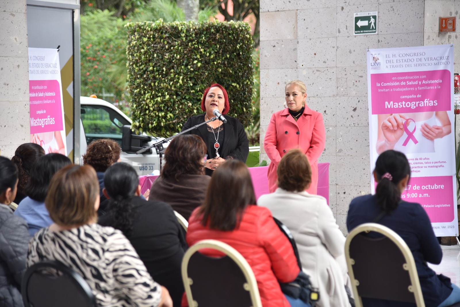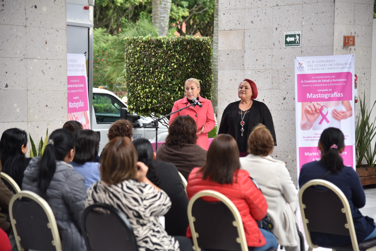 En el marco del Día Mundial contra el Cáncer de Mama, la presidenta de la Comisión Permanente de Salud y Asistencia de la LXVI Legislatura de Veracruz, diputada Adriana Esther Martínez Sánchez, coordinó los trabajos de la jornada de mastografías para el cuidado de la salud de las trabajadoras del Poder Legislativo y sus familias. Con el apoyo del Servicio Médico del Congreso local, a cargo de la doctora Claudia del Rosario García Pérez, y de personal de la Secretaría de Salud estatal, encabezada por la nueva titular, Guadalupe Díaz del Castillo Flores, se realizó en el Palacio Legislativo esta jornada de mastografías, cuyo objetivo primordial es la prevención o, en su caso, el diagnóstico temprano.