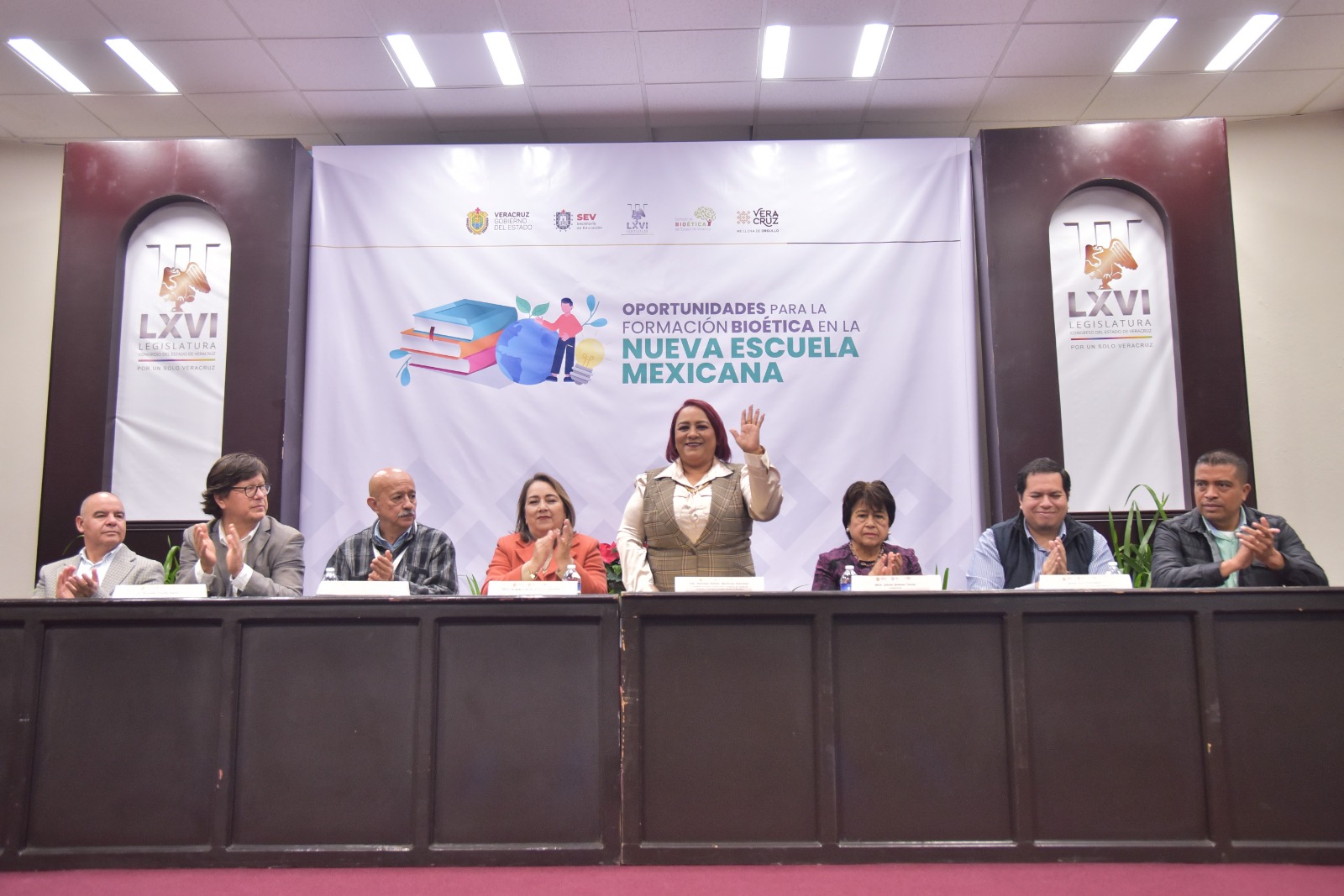 En su participación durante el conversatorio Oportunidades para la formación bioética en la Nueva Escuela Mexicana, la presidenta de la Mesa Directiva de la LXVI Legislatura del estado, diputada Adriana Esther Martínez Sánchez, dijo que el camino por el cual ha transitado Veracruz en los últimos cinco años demanda considerar, en todo momento y en todo lugar, la trascendencia de la Bioética en la toma de las decisiones que definen los destinos de la población y de la entidad. Si se aspira a potenciar el bienestar y progreso por el que cada día se trabaja, expuso la legisladora en este evento, organizado por autoridades de la Secretaría de Educación de Veracruz (SEV) y que tuvo como ponentes a la maestra Julieta Jiménez Torres y los doctores Reynaldo Castillo Aguilar y Pascual Linares Márquez, es necesario que sociedad y gobierno se rijan bajo los principios elementales de la bioética. Lo anterior “para trazar una agenda que nos permita identificar, oportunamente y con base en los retos y las circunstancias imperantes, soluciones a las diversas problemáticas”.