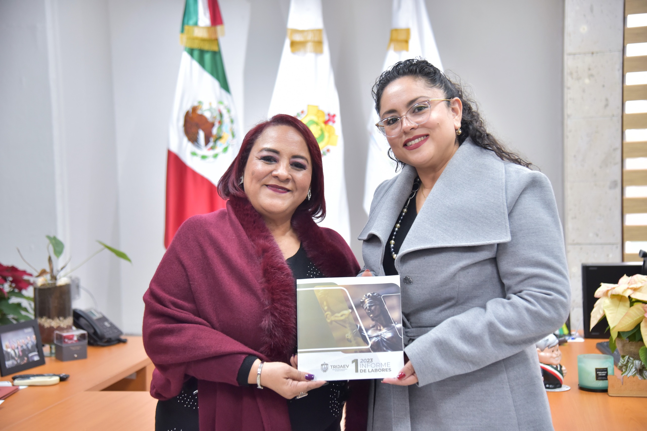 La presidenta de la Mesa Directiva de la LXVI Legislatura, diputada Adriana Esther Martínez Sánchez, recibió de la presidenta del Tribunal de Justicia Administrativa del Estado de Veracruz (TRIJAEV), magistrada Leticia Aguilar Jiménez, el primer Informe anual de este organismo autónomo, en cumplimiento con lo establecido en el párrafo segundo del Artículo 67 de la Constitución Política del Estado de Veracruz. Tras la reforma integral aprobada por la LXVI Legislatura en diciembre del 2022 y que dio origen a la creación del TRIJAEV, explicó la legisladora, “se han dado pasos firmes y contundentes en aras de alcanzar la justicia administrativa rápida y expedita para las y los veracruzanos”.