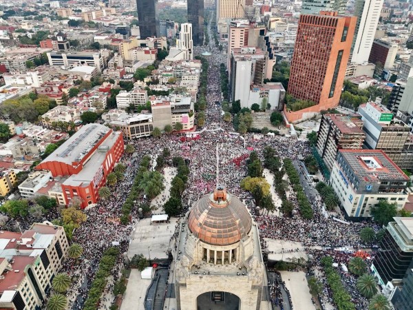 | Claudia Sheinbaum cierra su precampaña ante un abarrotado Monumento a la Revolución. |