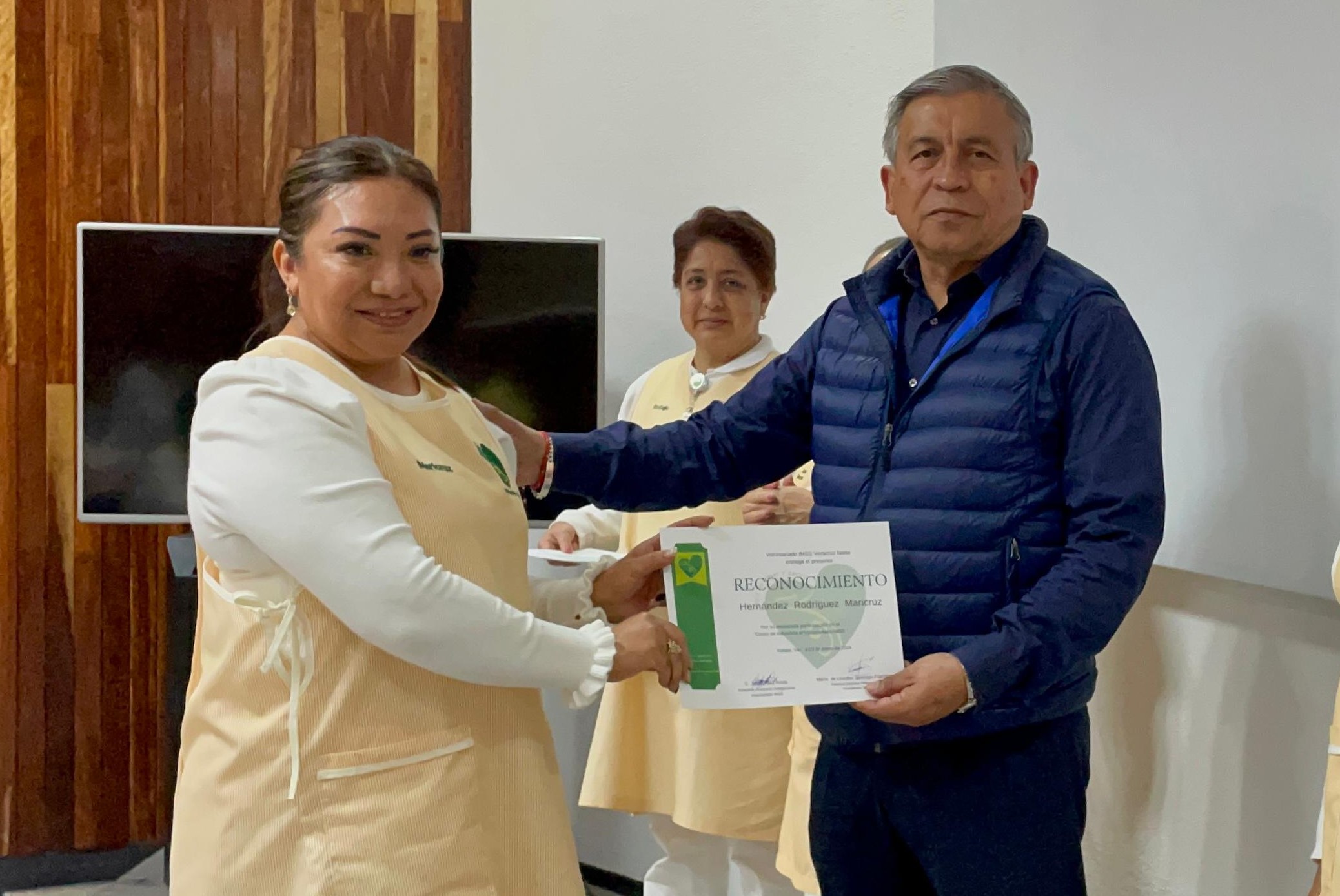 El Voluntariado del Instituto Mexicano del Seguro Social (IMSS) en Veracruz Norte impartió un curso de inducción dirigido al personal de nuevo ingreso, con el objetivo de formar íntegramente a cada participante en su labor con los derechohabientes. A las nuevas integrantes se les entregó un reconocimiento por su destacada participación durante el curso. En el evento estuvo presente el titular de la Representación, doctor Jorge Martínez Torres; las directoras ejecutiva y honoraria, María de Lourdes Santiago Francisco y Juanita Ruiz Arcos, respectivamente.