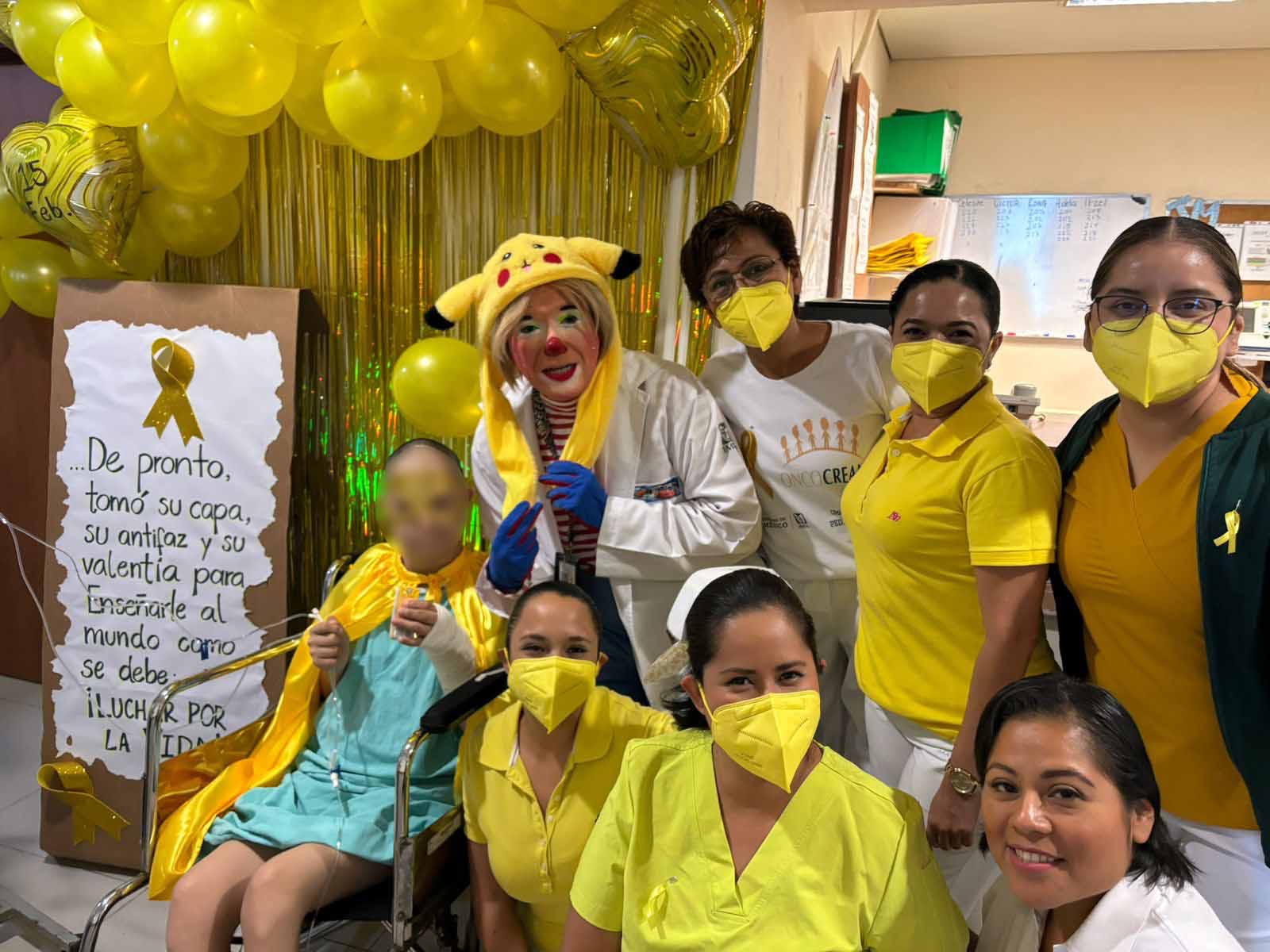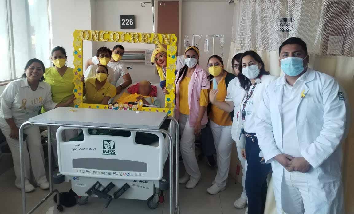En el marco del Día Internacional del Cáncer Infantil, personal de la Unidad Médica de Alta Especialidad (UMAE) Hospital de Especialidades No. 14 del Centro Médico Nacional (CMN) “Adolfo Ruíz Cortines”, del Instituto Mexicano del Seguro Social (IMSS) en Veracruz Norte, realizó actividades lúdicas con los pequeños hospitalizados en el cubículo de Oncología y Hematología, del área de Pediatría, que forman parte del Programa OncoCREAN. Cabe señalar que, se contó con la participación de personal de diversas categorías y con el apoyo del Cuerpo de Gobierno del hospital, con la finalidad de hacerle pasar a estos niños un buen momento y fortalecer sus ganas de salir adelante. Con dichas acciones el Seguro Social refrenda su compromiso de atender a la población derechohabiente, tanto física como emocionalmente.