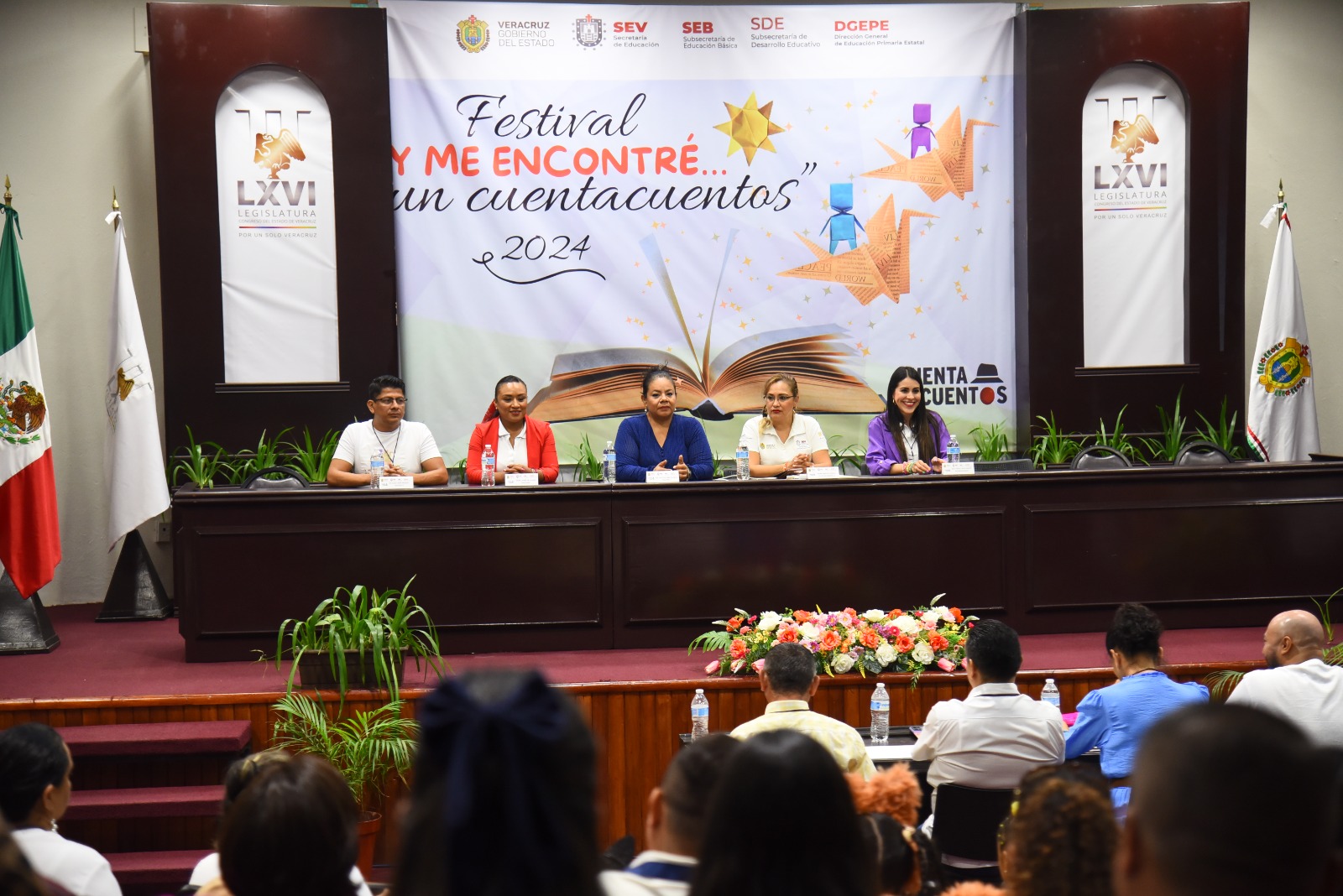 La presidenta de la Comisión Permanente de Educación y Cultura de la LXVI Legislatura del estado, diputada Illya Dolores Escobar Martínez, participó en la segunda edición del festival "Y me encontré… un cuentacuentos" en la fase regional Primaria Baja, organizado por la Dirección General de Educación Primaria Estatal de la Secretaría de Educación de Veracruz (SEV) y realizado en el auditorio Sebastián Lerdo de Tejada del Palacio Legislativo. La legisladora se congratuló por el trabajo de madres y padres de familia y autoridades educativas que han tenido como propósito incentivar en las niñas y los niños la imaginación y la diversión.