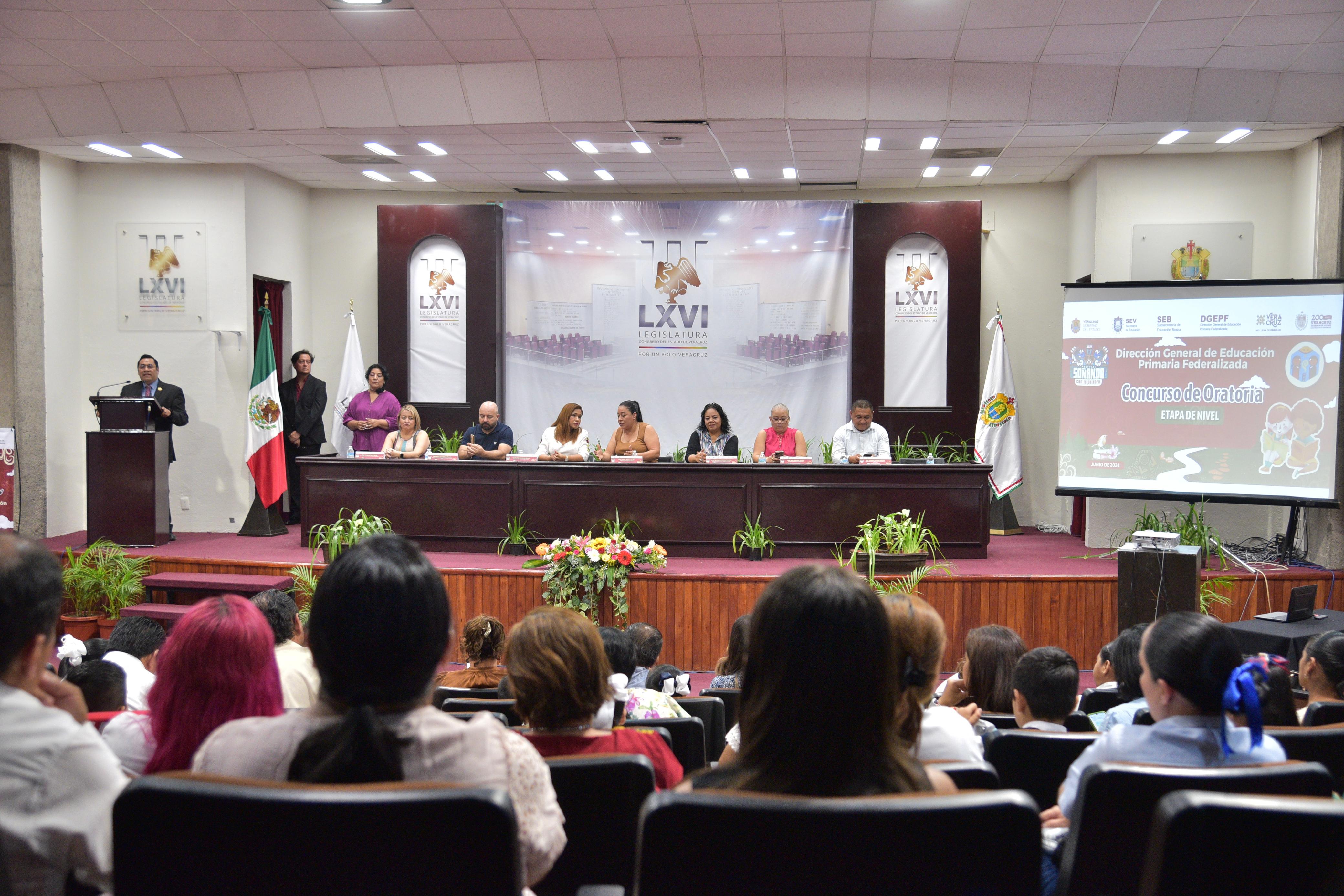 La presidenta de la Comisión Permanente de Educación y Cultura de la LXVI Legislatura, diputada Illya Dolores Escobar Martínez, fue partícipe del festival estatal “Soñando con la Palabra” 2024, en su división de oratoria, coordinado por la Secretaría de Educación de Veracruz (SEV), a través de la Subsecretaría de Educación Básica y la Dirección General de Educación Primaria Federalizada.
