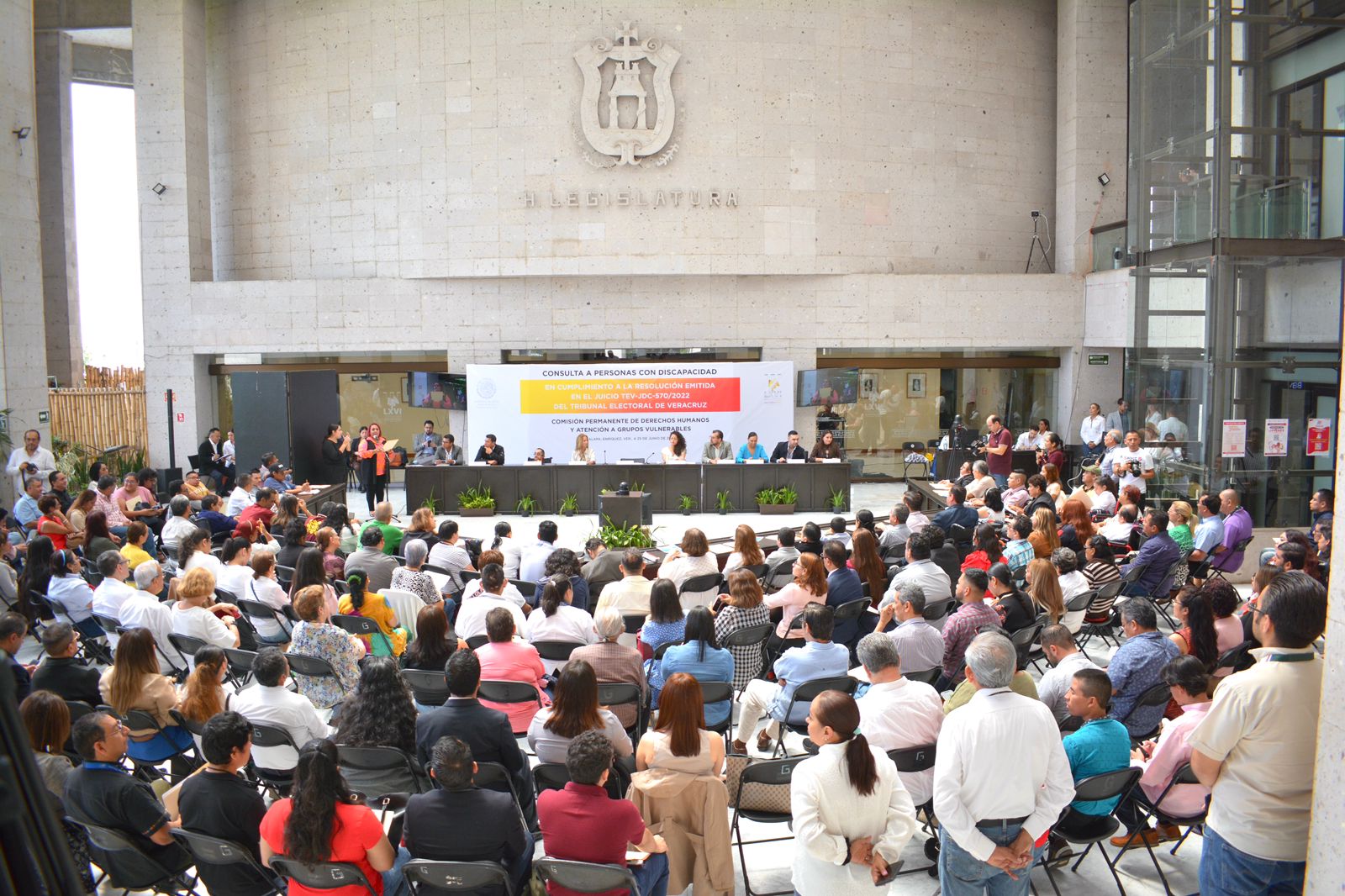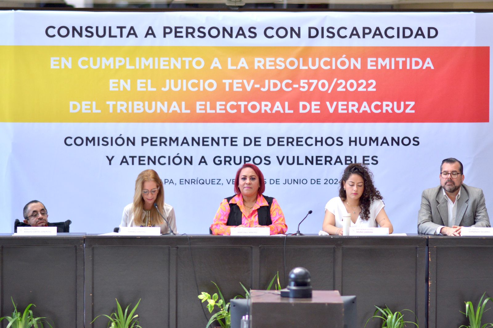 Este 25 de junio, el Congreso del Estado de Veracruz, por conducto de la Comisión Permanente de Derechos Humanos y Atención a Grupos Vulnerables, realizó dos foros consultivos dirigidos a personas con discapacidad, en cumplimiento con sentencias del Tribunal Electoral del Estado de Veracruz (TEV) y de la Suprema Corte de Justicia de la Nación (SCJN), a fin de escuchar los planteamientos de este sector y legislar al respecto. La resolución del Tribunal, emitida en el juicio TEV-JDC-570/2022, refiere que este Congreso debe escuchar a las personas con discapacidad, sus familiares, ciudadanos que les cuidan o apoyan, así como de organizaciones e instituciones relacionadas, respecto a las acciones afirmativas en el Código Electoral que permita a más personas de este sector poblacional participar en las elecciones.
