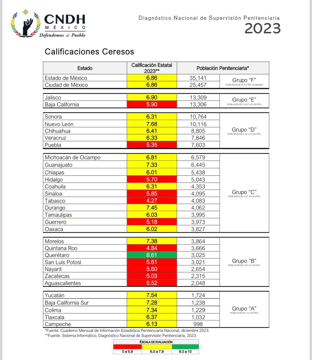 Este fin de semana salió publicado el Diagnóstico Nacional de Supervisión Penitenciaria de la CNDH correspondiente al año 2023, en el cual el Estado de Veracruz obtuvo una calificación de 6.33, superando con esto ligeramente la calificación que obtuvo en el 2022 y quedando por arriba de la media a nivel nacional. Lo anterior son buenas noticias, pues hay que recordar que en dicho Diagnóstico tanto Javier Duarte de Ochoa como Miguel Ángel Yunes Linares, dejaron el Estado en calificación reprobatoria. Veracruz destaca en el Grupo D, de los Centros de Reinserción Social, siendo aquellos Estados que tienen una población penitenciaria entre los 6,001 a los 10,000 personas privadas de su libertad. En dicho Grupo, Veracruz obtuvo una calificación aprobatoria de 6.33, lo cual es sensiblemente superior a la calificación con que se recibió el Estado en la presente administración, la cual era de 5.87. Así, la calificación continúa en forma ascendente gracias a las políticas públicas implementadas en la presente administración. La anterior calificación de 6.33 significa que el sistema penitenciario estatal en Veracruz garantiza las condiciones mínimas necesarias para una vida digna en reclusión de las personas privadas de la libertad (reos, presos), de acuerdo con el Diagnóstico Nacional de Supervisión Penitenciaria (DNSP) 2023. Las visitas de supervisión para determinar la calificación se basaron en identificar y observar, principalmente, el respeto, protección y garantía, por parte de las autoridades penitenciarias, de aspectos como los derechos a la integridad personal, a la salud, a una habitabilidad y vida digna, a una reinserción social efectiva, a la seguridad jurídica y a la igualdad y no discriminación, a partir de cómo, desde un enfoque diferencial y especializado, se brindan y garantizan servicios específicos a las personas privadas de la libertad que se encuentran en una situación de mayor vulnerabilidad. Es de destacar que de todos los Estados, once obtuvieron una calificación reprobatoria y Veracruz no se encuentra entre ellos pues la calificación no se presenta por Cereso, sino en el promedio de las calificaciones de los Ceresos observados. Cabe destacar que el Diagnóstico Nacional de Supervisión Penitenciaria constituye un importante referente público nacional e internacional, que permite dar a conocer las condiciones actuales en las que se encuentran los centros penitenciarios en el país y tiene como objetivo hacer visible la situación de las personas privadas de su libertad en función del goce, respeto, garantía y protección de sus derechos humanos al interior de dichos centros. Que aún falta por hacer, por supuesto, pero Veracruz va por buen camino y ha sacado al Sistema Penitenciario de las calificaciones reprobatorias de la CNDH. Lo que falta es tiempo para que lo que hoy se está sembrando, se siga cosechando. No hay perfección, pues de todos los estados, solo uno mantiene calificación arriba de 8, y finalmente ese es el objetivo, continuar con la espiral ascendente para demostrar que en Veracruz se están haciendo bien las cosas.