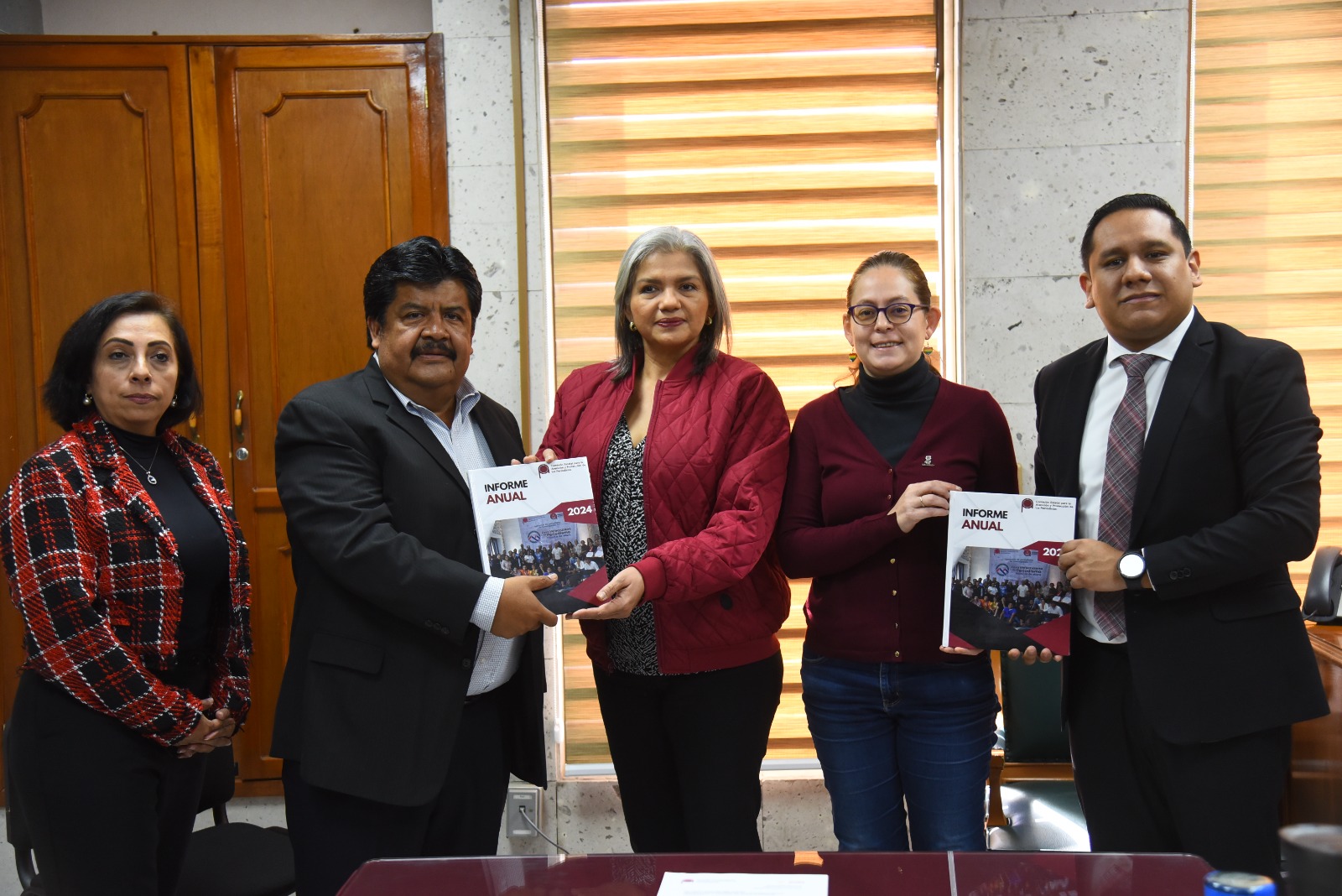Respecto a la presentación del informe de la CEDH, acompañaron a la titular Namiko Matzumoto Benítez, el director de Asuntos Jurídicos, Miguel Ángel Córdova Álvarez; la secretaria Ejecutiva, Minerva Regina Pérez; el secretario Técnico, Marcos Daniel Vela Sánchez y la titular de la Unidad de Género, Yeralding Sánchez Morales.