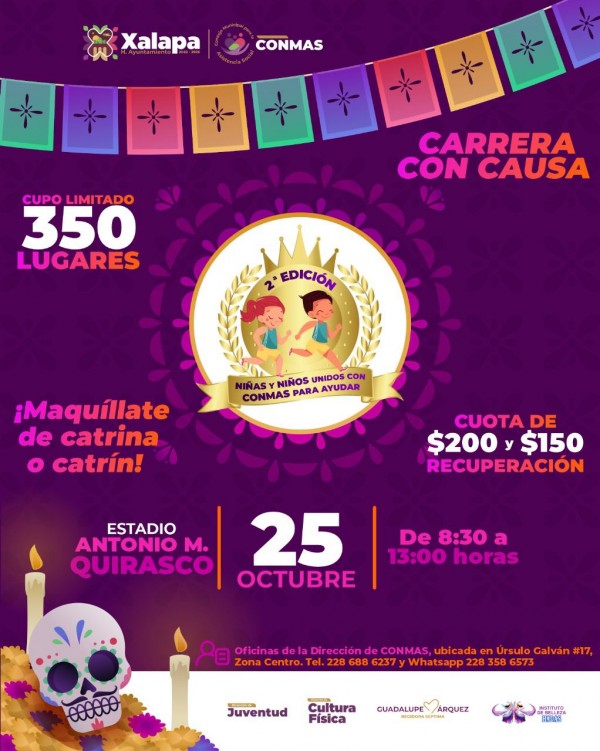 Xalapa, Ver.- Con el propósito de fomentar la solidaridad y la participación de la niñez xalapeña en actividades de asistencia social, el Ayuntamiento de Xalapa invita a participar en la segunda edición de la carrera infantil “Niñas y Niños Unidos con Conmas para Ayudar”.