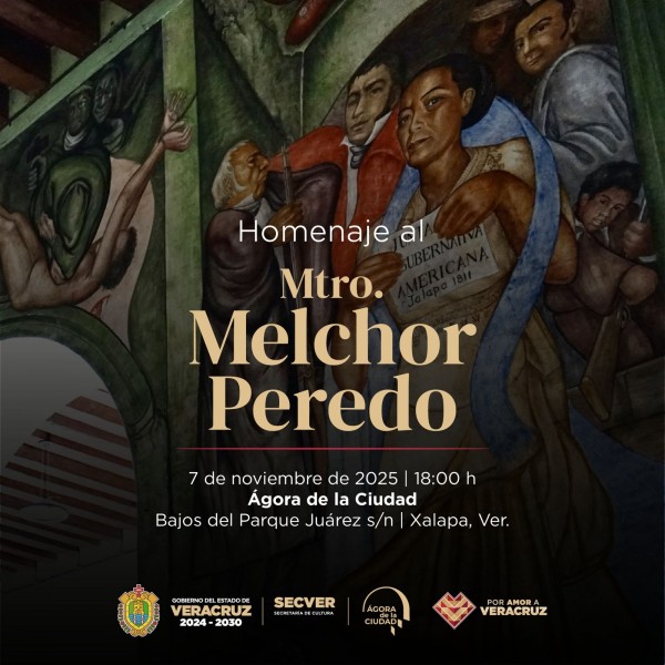 Xalapa, Ver., sábado 01 de noviembre de 2025.- La Secretaría de Cultura de Veracruz (SECVER) invita al público en general a asistir al Homenaje en honor al maestro Melchor Peredo, destacado muralista, que se realizará el próximo viernes 07 de noviembre, a las 18:00 horas, en el Ágora de la Ciudad. La entrada es gratuita.