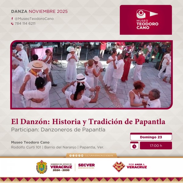 Finalmente, el domingo 23 de noviembre, a las 17:00 horas, se llevará a cabo la presentación cultural El Danzón: Historia y Tradición de Papantla, un evento de música y baile del género del danzón donde participarán los Danzoneros de Papantla. Esta agrupación es reconocida por mantener viva esta tradición a través de sus interpretaciones y bailes que rescatan la esencia original del danzón, con su música característica y la vestimenta tradicional que representa la época de oro de este género.