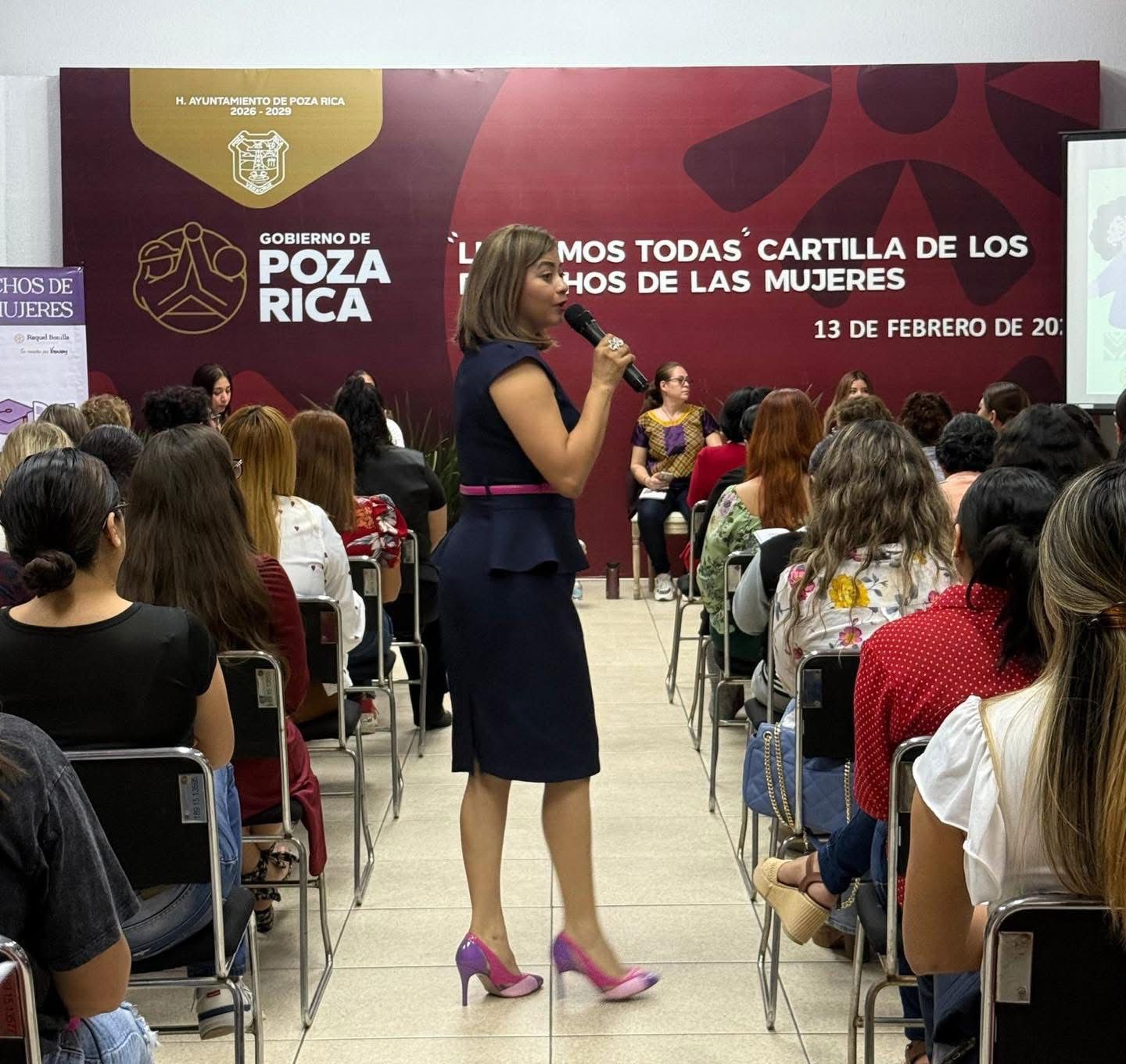 Poza Rica, Ver.- En el marco de la Presentación de la Cartilla de los Derechos de las Mujeres, la Presidenta Municipal de Poza Rica, Adanely Rodríguez, afirmó que los ejes principales del Gobierno Municipal son la protección, la prevención y el acompañamiento integral a las mujeres de la ciudad. Afirmó que su administración trabaja con acciones concretas, medibles y coordinadas para atender y eliminar las condiciones que dieron origen a las Alertas de Violencia de Género en el municipio. Subrayó que gobernar también significa cuidar y garantizar derechos, dejando claro que la atención a las mujeres no es un tema accesorio, sino un eje prioritario y permanente de su administración.