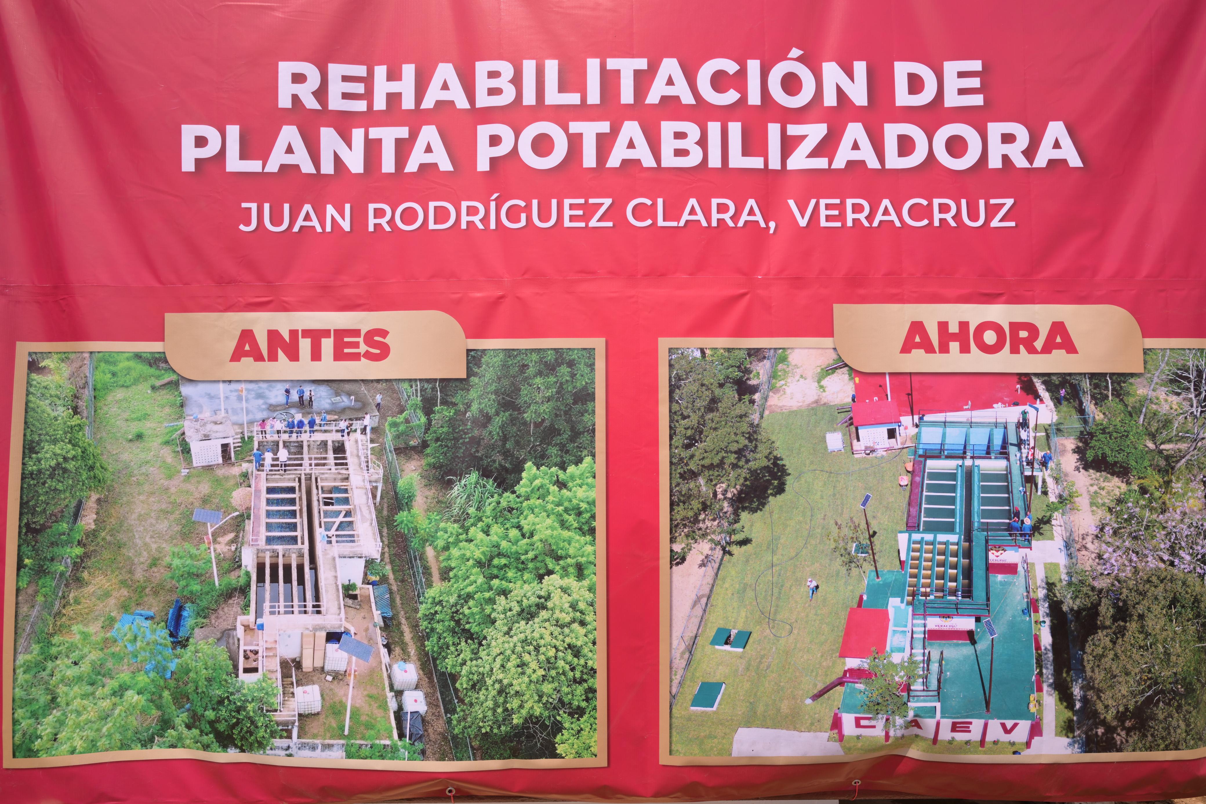 Juan Rodríguez Clara, Ver., jueves 05 de marzo de 2026.- Con una inversión de 415 mil pesos, ejercidos a través de la Comisión del Agua del Estado de Veracruz (CAEV), la gobernadora Rocío Nahle García inauguró la rehabilitación de la planta potabilizadora con capacidad de 60 litros por segundo, en beneficio de 15 mil 512 habitantes de este municipio.
