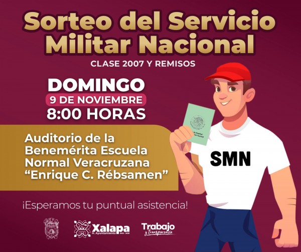 Convoca Ayuntamiento de Xalapa a Sorteo del Servicio Militar Nacional Clase 2007