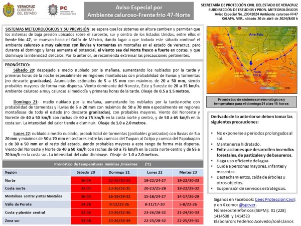Población veracruzana: #AvisoEspecial por Ambiente caluroso a muy caluroso