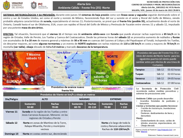 Alerta Gris por Surada-Frente frío-lluvia-Norte