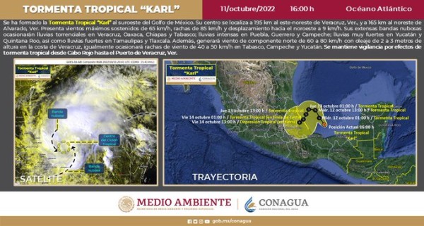 Karl inicia desplazamiento hacia las costas de Tabasco y Veracruz
