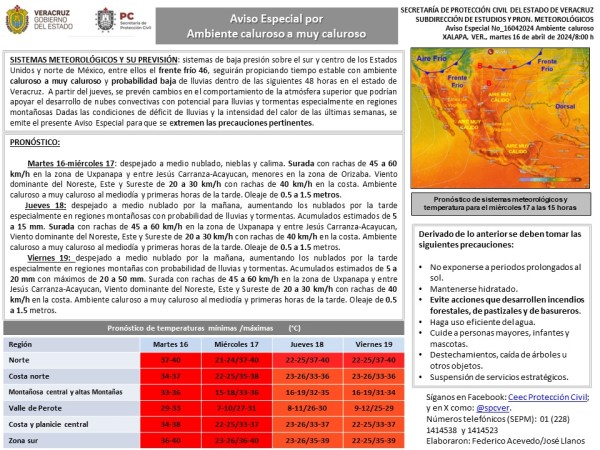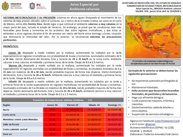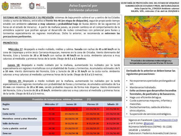 Población veracruzana: #AvisoEspecial por Ambiente caluroso a muy caluroso