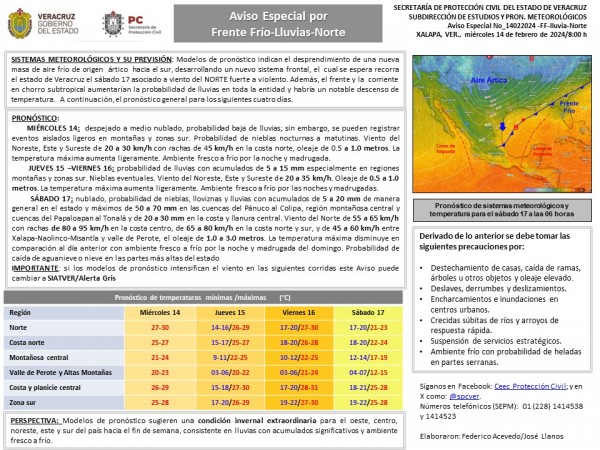 Población veracruzana: #AvisoEspecial por frente frío-Norte-Lluvia.