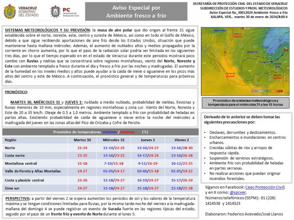 Población veracruzana: #AvisoEspecial por Ambiente fresco a frío