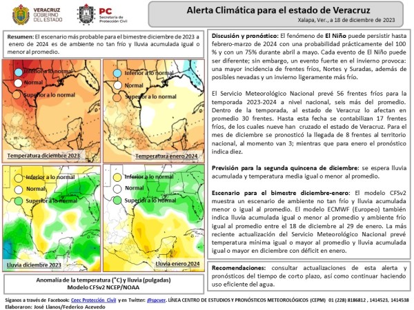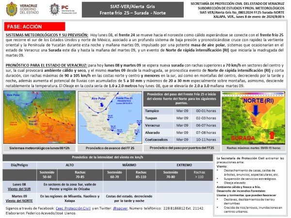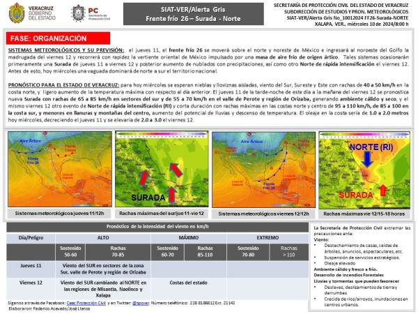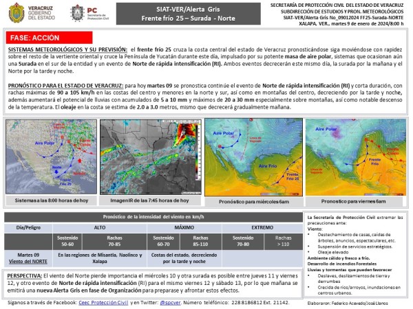 Población veracruzana: #AvisoEspecial por frente frío 24 - Lluvia - Norte
