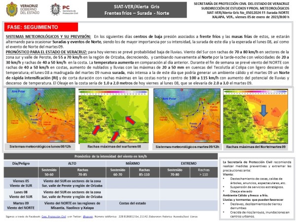 Población veracruzana: Alerta Gris por Surada-Norte