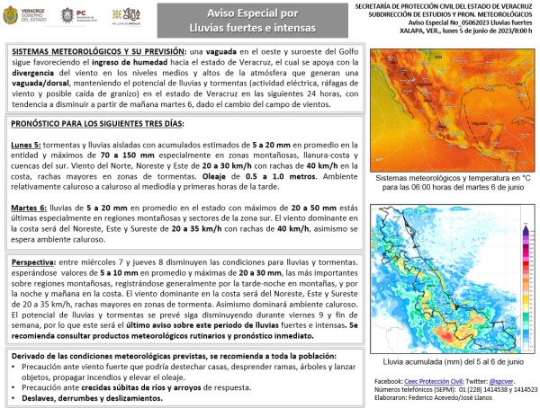 Población veracruzana: #AvisoEspecial por lluvias fuertes e intensas